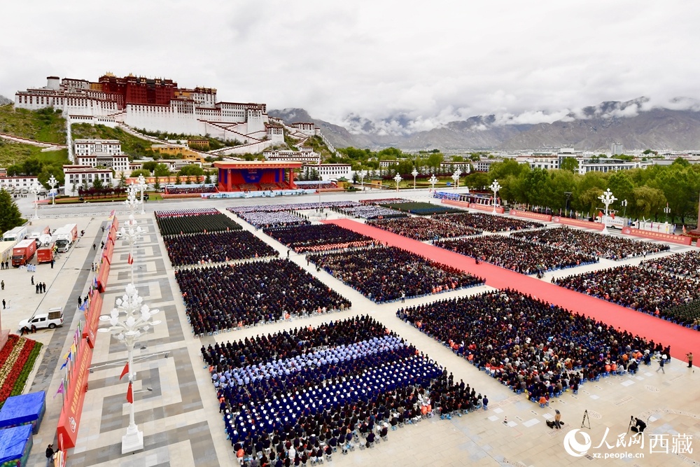 白雪皑皑的高原像水一样唱歌。 8月21日上午,来自所有种族的大约20,000名干部和众多藏族的群众聚集在拉萨的Potala Palace Square,热情地庆祝了西藏自治区成立60周年。红旗飞了,笑声飞到广场上,到处都是节日和温暖的节日气氛。