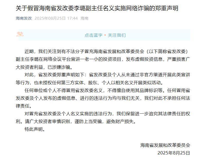 假的“海南省发展与改革委员会的副主任”发布了不正确的投资信息。委员会打电话给警察。律师:此人涉嫌在Jimu News合同中作弊或欺诈...