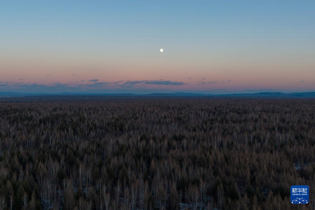 这是11月4日拍摄的黑龙江省伊春市凤林县上空的月亮(无人机照片)。 11月5日将触发第二次“超级...