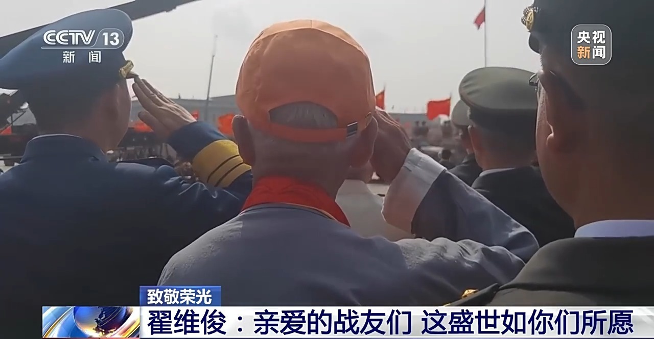 9月3日,一次大型会议纪念了中国反对日本入侵和世界反法西斯战争的胜利80周年。 On the site viewing platform, there are nearly 100-year-old male-Zhai Weijun. Ten years ago, the car checked him with a team of anti-Japanese war veterans for inspection by Tiananmen Square; This year, as a representative of the front model, he witnessed prosperity along with the heroes of the anti-Japanese war on the viewing platform.